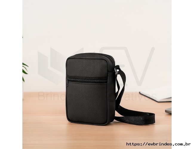 Descrição: Bolsa de ombro confeccionada em couro sintético com fechamento em zíper e alça ajustável. Possui dois compartimentos: um com bolso aberto em tecido de malha e outro localizado na parte frontal.